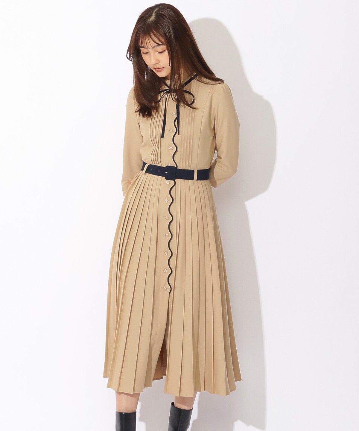 スカラッププリーツワンピース S ベージュ Redyazel 公式オンラインショップ バーンデストローズ
